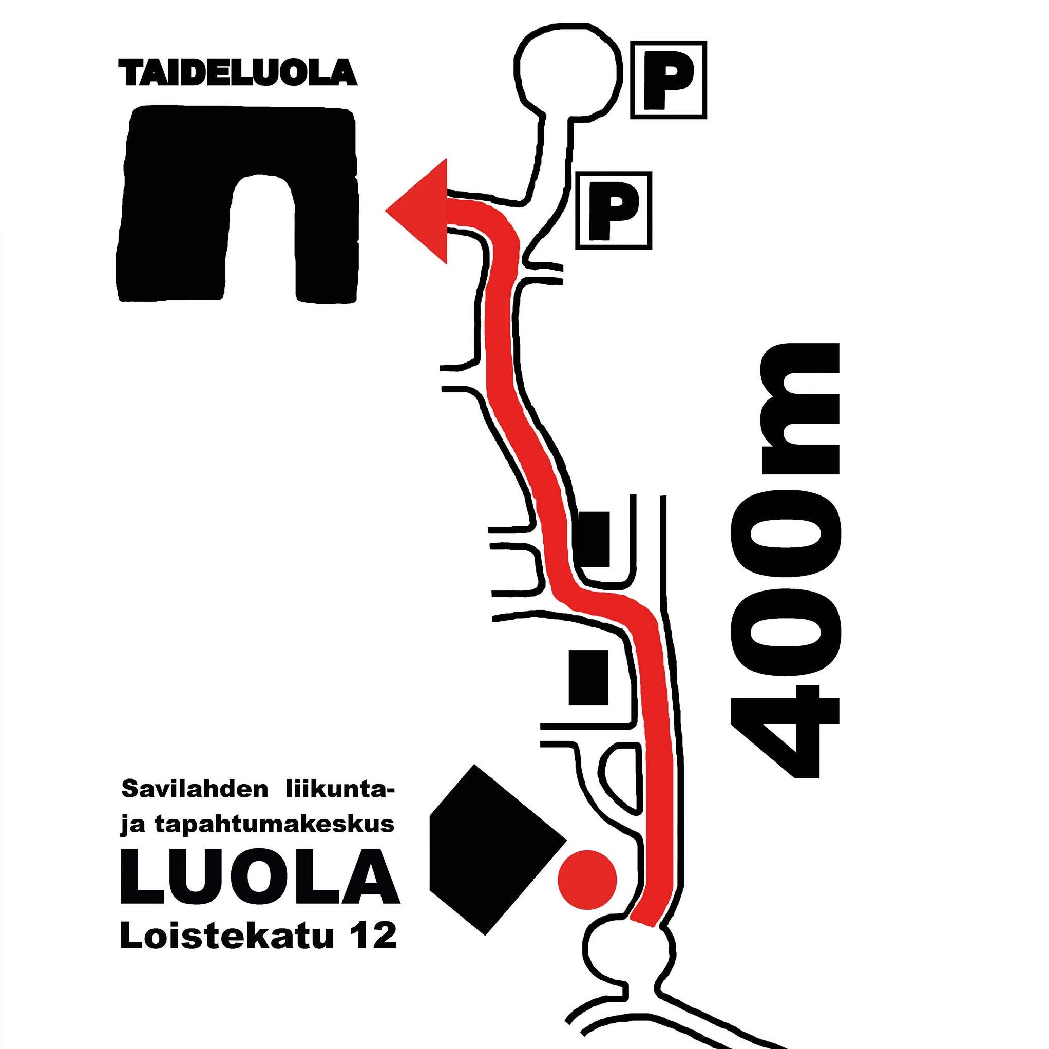 Taideluola sijaitsee n. 400 m Savilahden liikunta- ja tapahtumakeskus LUOLAlta (Loistekatu 12), mistä ajo-